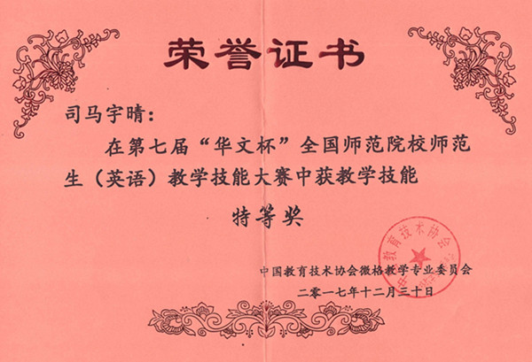 威廉体育williamhill学子在第七届“华文杯”全国师范院校师范生英语教学技能大赛中获奖