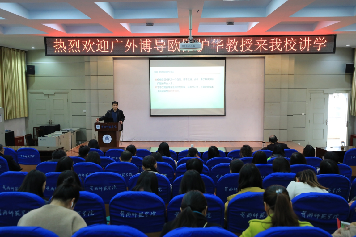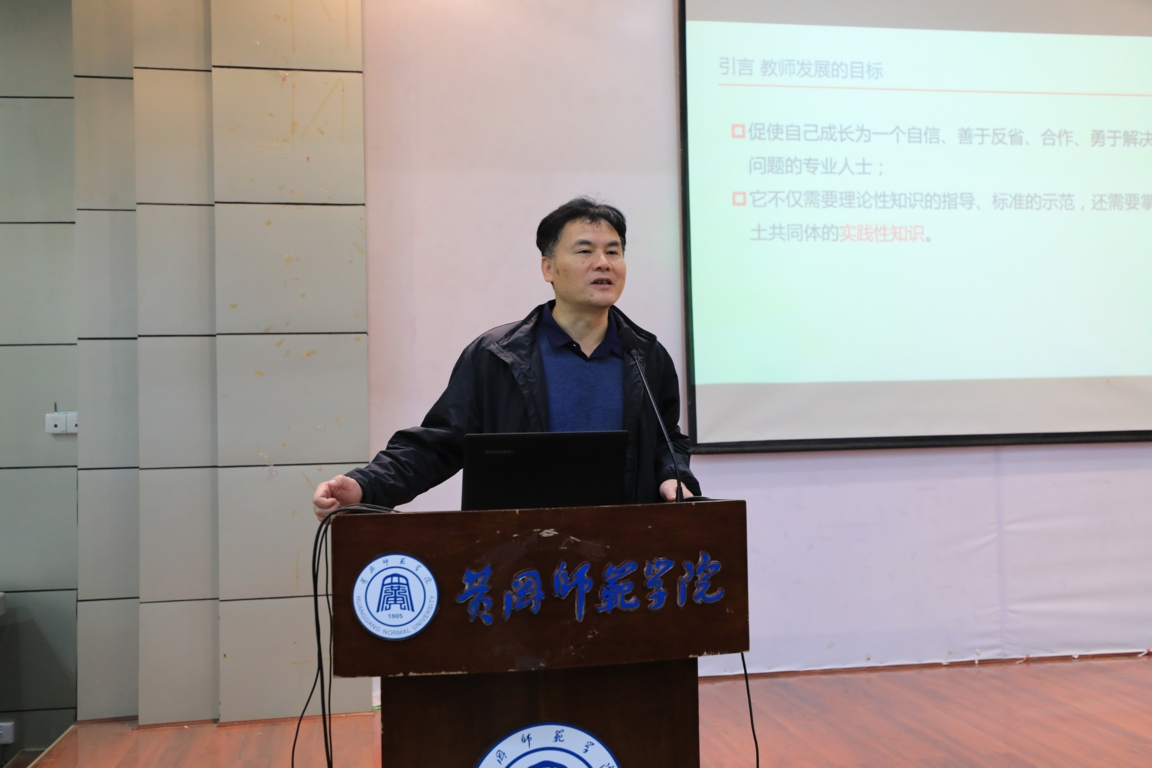 此次学术报告分两部分进行。在第一部分题为《单位共同体中教师学习实践性知识的路径探究》报告中,