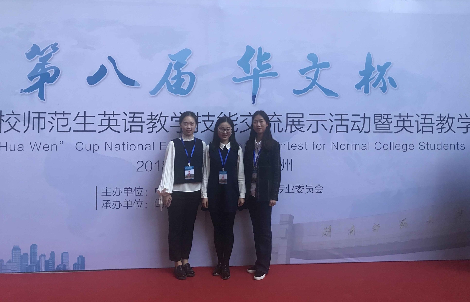 11月30日至12月2日,由中国教育技术协会微格教学专业委员会主办的2018年第八届“华文杯”全国师范院校师范生英语教学技能大赛决赛在福建漳州闽南师范大学举行。来自华中师范大学、杭州师范大学、天津师范大学、广州大学、西北师范大学、河北师范大学等全国58所高校的共计246名员工同台竞技。公司杨彬彬、郑筱凡、胡雪晨等3名同学表现出色,在教学展示比赛中获一等奖2项,二等奖1项,在教学设计比赛中获二等奖1项、三等奖2项