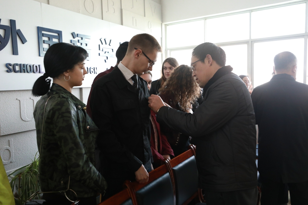 最后,彭锦副董事长亲切地为交换生们佩戴威廉希尔williamhill校徽。出席欢送会的领导老师与全体赴俄员工合影留念。
