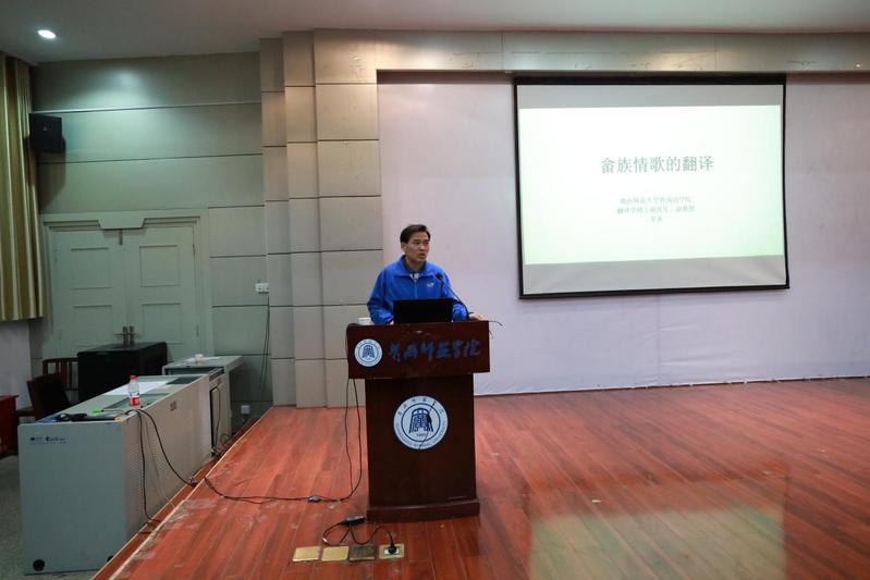 3月21日下午,湖南师范大学英语语言文学专业翻译方向博士万兵在公司博学楼B03做了一场以《畲族情歌的翻译》为题的学术报告。