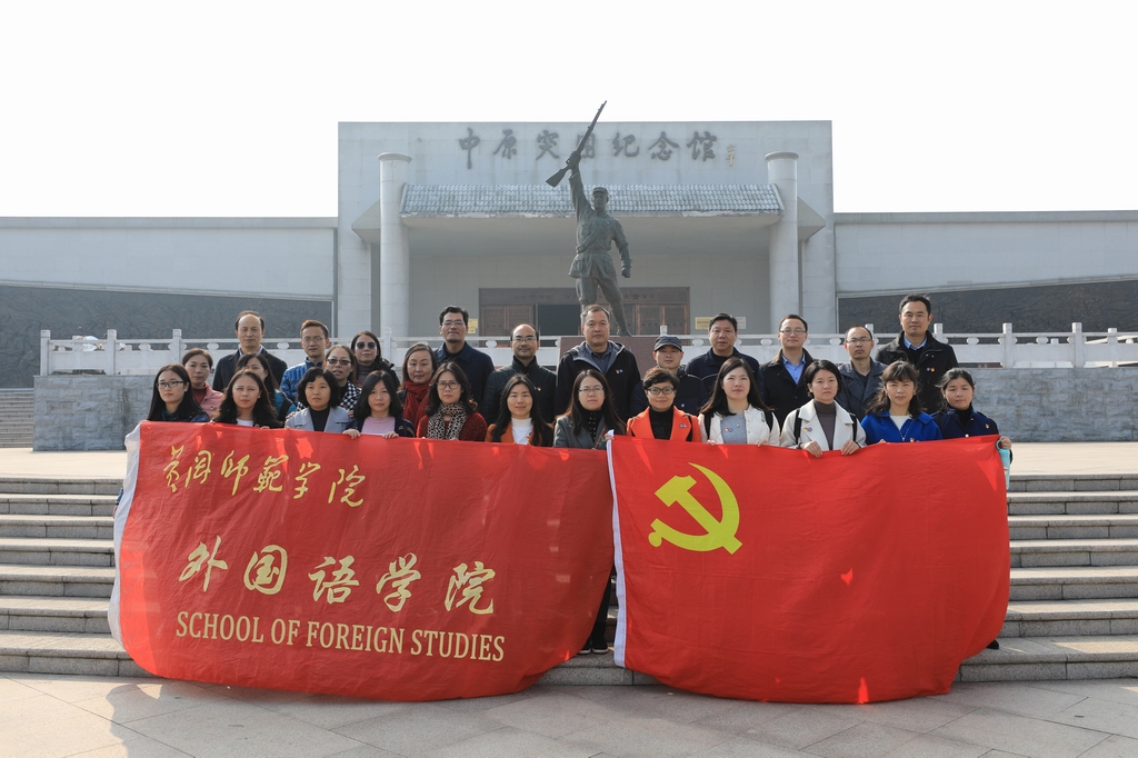 结束了中原突围纪念馆的参观学习后,参加活动的党员同志们在党总支部书记余健明的带领下重温了入党誓词。