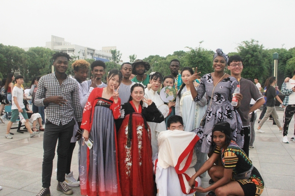 多国文艺表演中,有樱花社带来的清丽纯美的和服舞表演;有俄罗斯的帅哥靓女组合表演的吉他弹唱;有汉服展示和古风献唱,仙袂飘飘的汉服和清脆缠绵的女声展现了泱泱大国的文化底蕴;有外教Andy和外院学子同台表演的师生吉他弹唱《童年》;有公司体育公司同学带来的刚劲雄浑的中华武术表演;有俄罗斯交换生和公司学子共同表演的维也纳华尔兹舞蹈;有埃塞俄比亚职工带来的非洲传统唱跳即兴表演,简短、精彩的文艺表演让人叫绝,回味良久。
