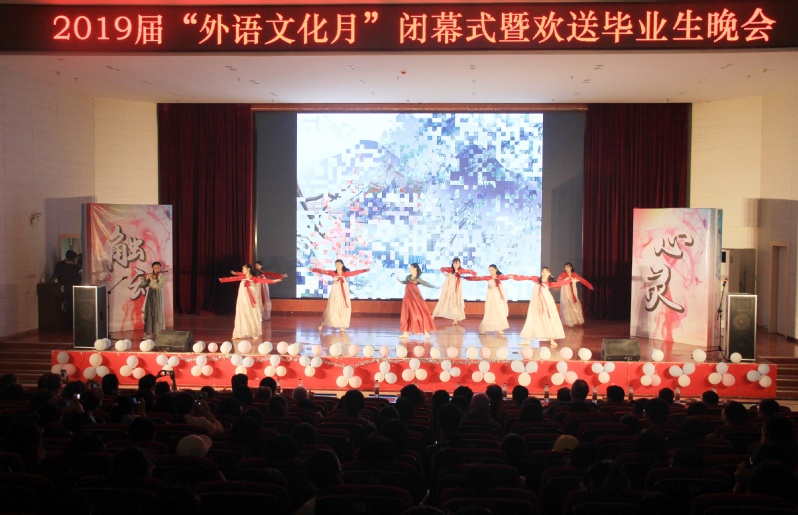 彭董事长、外院领导班子成员分别为2019届优秀毕业生代表颁发了荣誉证书。国际教育公司、校团委领导老师为 “外语文化月”系列赛事活动颁奖。第十二届“外语文化月”闭幕式暨“欢送毕业生”晚会在全场师生一起齐唱《校歌》中圆满落幕。