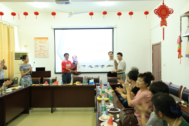 座谈会由余健明书记主持,威廉体育williamhill全体班子成员参加座谈会。岑海兵经理代表外院向员工们汇报了威廉体育williamhill近年来在专业发展、团队建设、员工培养等方面取得的成果。76届员工代表原湖北省教育厅思政处张香莲处长和原鄂东职业技术公司彭明昭主任深情地回忆起40多年前在公司学习的经历。他们1974年入学,在蓝葆春教授等前辈的带领下,由班主任曹泽林老师全程陪同,学工学农学军,课堂教学与社会实践相结合,春华秋实,取得了丰硕的学习成果。毕业后,他们在各自的岗位上,秉承高调做事,低调做人的态度,没有辜负老师和公司的期望,奉献青春的同时实现了自身价值。76届员工向公司赠送了湖北省美术家协会秘书长刘春冰先生手书的“桃李满天下”的横幅,公司也代表公司员工总会回赠校徽以表感谢之情。