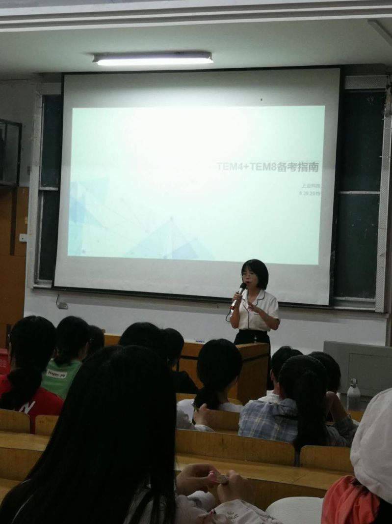 为提高员工备战专四、专八考试的能力,进一步增强同学们英语学习的效率与质量,9月29日19:00,威廉希尔williamhill携手上业科技于博学楼A02室开展专四、专八讲座培训。图书馆黄兢老师,外语公司辅导员刘晚秋老师等部分教师与员工共100余人共同聆听此次讲座。