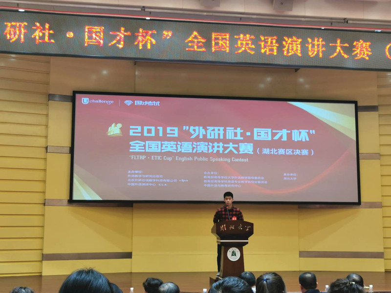 11月3日,2019年“外研社·国才杯”全国英语演讲大赛湖北赛区半决赛和决赛在湖北大学隆重举行。公司2017级英语(师范类)员工赵星昱凭借沉稳的台风、流利的表达和新颖的见解,在半决赛中以全省11名的好成绩进入决赛,并在决赛中荣获湖北赛区二等奖。