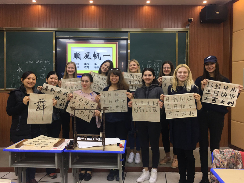 11月22日,公司教师李峥在圆楼305B为公司俄罗斯交换生举办了一场中国传统书法与绘画工作坊,来自俄罗斯的9名交换生和4名对外汉语专业的实习生参加了本次体验学习。
