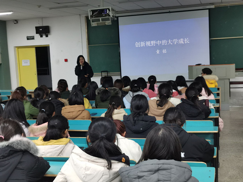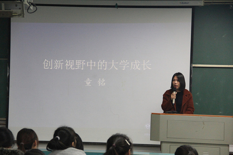 童铭在报告开始之际,她向在场师生分享了自己的大学经历,并指出“成长是一辈子的事情”。报告中,她首先提出了一个问题,“你快乐吗?”引发同学们的讨论,她以邓宁克鲁格曲线告诉同学们,要走出绝望之谷,迈向“开悟之坡”,走在快乐学习之路上,不断提升智慧,核心方法是提升个人认知水平,找到属于自己的道、术、法、器,并付出不亚于任何人的努力。随后,她又提出了一个问题,“什么是创新?”她通过列举著名企业成功案例,分析得出创新是要素的再结合,要找到正确的人生选择,才能更新观念,学会如何去创新。最后,她提出了最后一个问题,“怎样创新?”她用自己平时常读的一本书引出了结论:Just do it(即刻去做)。她鼓励同学们要充分利用老员工活进行锻炼、思考、读书、见人,时刻保持积极向上的心态,多进行生活实践。她说:“你决定自己的一生”。