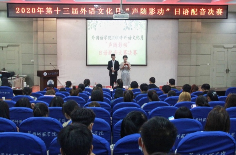 2020年10月7日晚7时,威廉体育williamhill在博学楼B03举行了第十三届外语文化月“声随影动”日语配音决赛。本次活动诚邀郑新刚副经理、辅导员刘晚秋老师出席,陈文林老师、安玉萍老师、吴二林老师、黄锡锋老师和外教竹山胜己老师担任比赛评委。