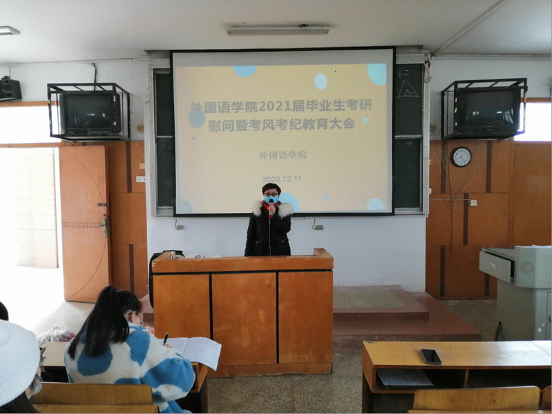 12月11日中午,威廉体育williamhill在A02召开2021届毕业生考研慰问暨考风考纪教育大会。公司党委书记余健明、经理岑海兵、党委副书记夏小环、毕业生辅导员程文学出席了此次会议。