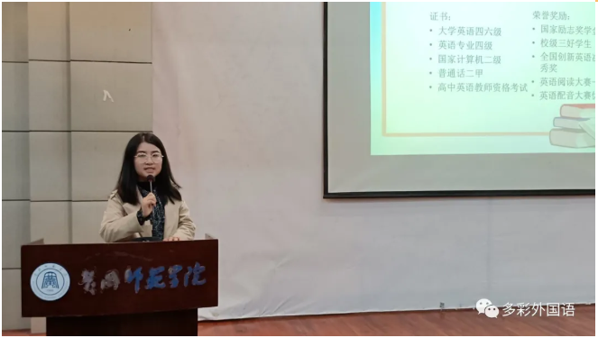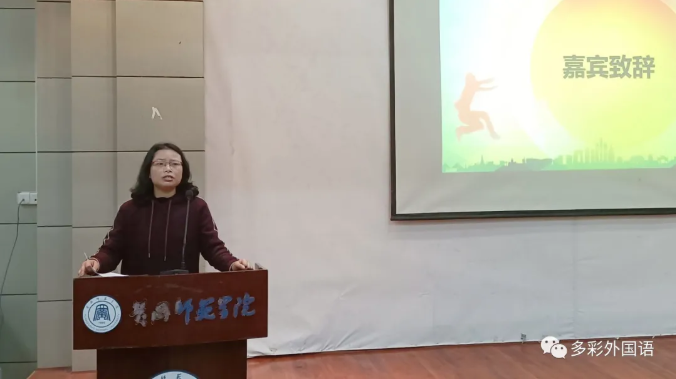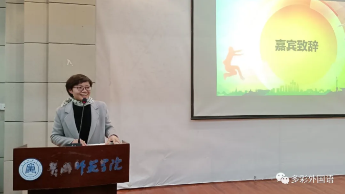 嘉宾万呈惠老师就全国老员工英语竞赛参赛作了现场的宣传,她鼓励广大同学要有走出校园的视野,多参加省级、国家级赛事,与来自全国的老员工同台竞技,以赛促能,提升自我。