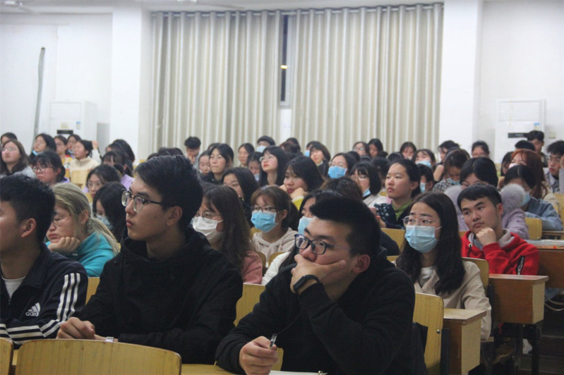 王思涵同学主要从四个方面给大家进行交流与分享:专业优势与劣势、硬实力提升、软实力加强、心理素质和临场发挥。她从多方面分析了英语专业的优劣势,并给出如何提升硬实力与软实力的方法,还结合自己的现场评选经历与评选前的准备情况,强调了评选前竞技状态及场上稳定从容发挥的重要性。交流会过程中,同学们仔细聆听,并不停地拍照记录。