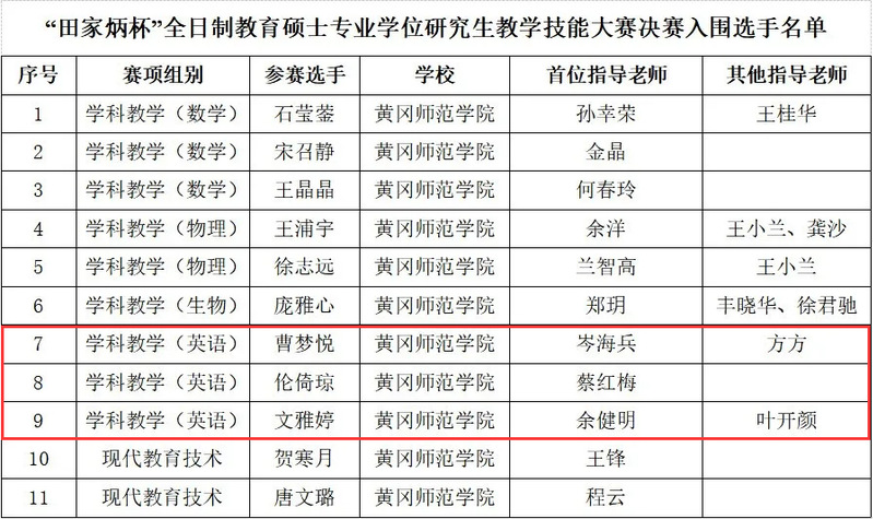 近日,在“田家炳杯”全日制教育硕士专业学位研究生教学技能大赛初赛中,威廉体育williamhill推荐的曹梦悦、伦倚琼、文雅婷三位同学,经经初赛评审全部入围全国决赛。