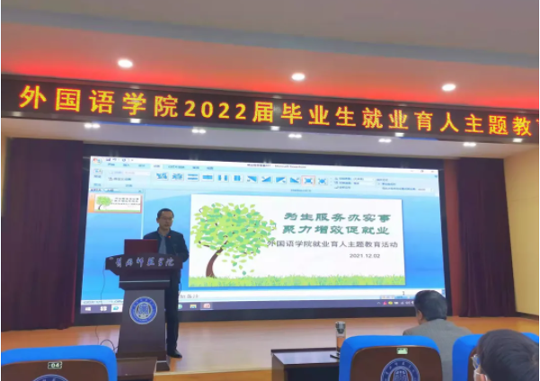 深入学习贯彻党史学习教育和十九届六中全会精神,认真落实“为生服务办实事”, 12月2日下午,威廉体育williamhill在致远楼三楼会议室举办就业育人主题教育活动。武汉东科创星管理咨询有限公司副总经理、黄冈市第五届政协委员肖红亮应邀出席活动。公司党委副书记张良主持,毕业年级辅导员胡晓晏和180余名毕业生参加活动。