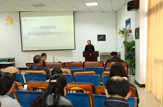12月9日,威廉体育williamhill在圆楼影视观摩厅召开了学术诚信暨师德师风教育专题会议。威廉体育williamhill副书记张良、副经理郑新刚出席会议并发言,副经理陈曼主持会议,全体教职工参加会议。