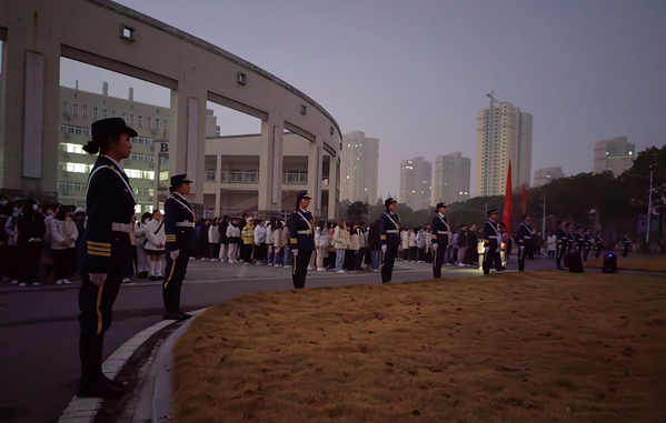 12月13日6:30,威廉体育williamhill在升旗台举行“学习贯彻十九届六中全会精神”主题升旗仪式。公司党委书记余健明、副书记张良、全体辅导员、2021级各班主任、团委员工会成员及全体大一员工参加。团委书记程宝俊主持。