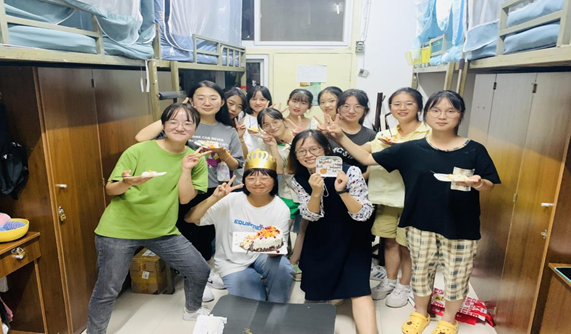 说到心得和感悟,嗯......我觉得主要有这么两点吧。首先要用爱去育人,比如说我们班有位来自偏远地区的同学,因家境贫寒而有些自卑,而且她不想读日语专业,终日郁郁寡欢,不爱与人交谈,为了让她尽快融入到大家庭中,在她生日的时候我买了个大蛋糕,和同学们一起为她庆生,并且和他们分享了自己从出国到博士的十年奋斗历程。一个蛋糕,一次倾心交流,那天我们在一起特别开心,真的是相亲相爱的一家人。我这么做不为别的,只是想让他们在黄师能够快乐学习,健康成长,更希望他们能做爱国、励志、求真、力行的新时代青年。