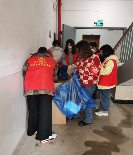 活动过程中,受助员工志愿者走进宿舍回收废旧物品并发放倡议书,鼓励她们积极行动起来,让废旧回收利用的知识融入生活中,得到了良好的反馈。走廊外、寝室里,志愿者们或站着、或蹲着、或俯下身来,一双双不停歇的手将杂乱摆放的垃圾纸壳迅速整理好。辅导员王军老师现场悉心指导志愿者进行有序整理。大家对此纷纷点赞,认为此次活动的开展一举多得,值得长期推广下去。