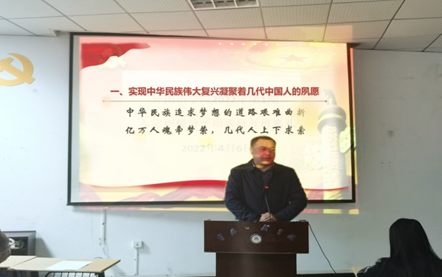 2022年4月6日,外院入党积极分子培训班第一课,公司党委书记余健明书记以“实现中华民族伟大复兴”为主题讲授党课。