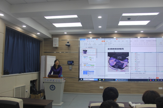 余健明向同学们介绍了胡娟老师的个人求学和工作经历,介绍了本次思政课的主题《打好实现碳达峰碳中和这场硬仗》。