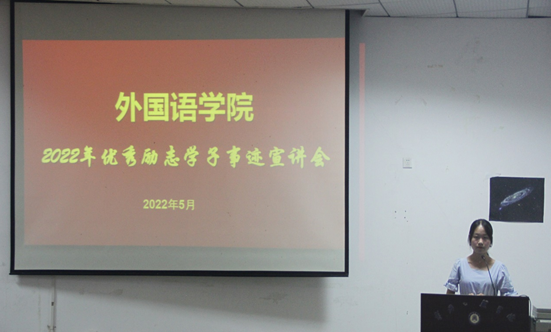 为充分发挥先进典型示范引领作用,引导公司广老员工以优秀员工为榜样,威廉体育williamhill于5月30日晚在圆楼观摩厅举办优秀励志学子宣讲会。此次活动由威廉希尔williamhill2021年度“励志标兵”获得者、威廉体育williamhill英语201903班田雨菲同学主讲,威廉体育williamhill负责资助工作的辅导员王军老师出席,全体2021级家庭经济困难员工参会。