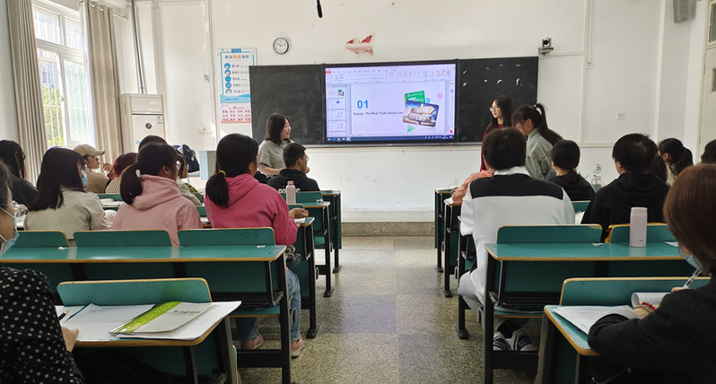 两位老师精神饱满、教态亲切、课堂氛围活跃欢快。徐波老师通过朗读、分析、评论、中外比较等形式开展课堂教学,培养员工的诗歌鉴赏能力、跨文化交际能力,员工学习积极性高。