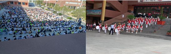 这里除了学习氛围很浓厚,校园生活也很丰富,课间操,防震演练,国旗下的讲话,鼓号队,还有上周的迎国庆活动,以及操场上打篮球的身影,充实着员工的课外生活。