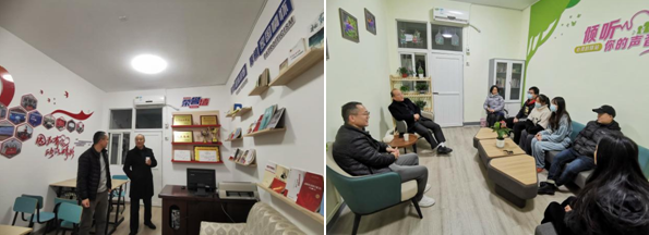 夏庆利来到辅导员工作室,了解了他们的工作情况,对他们坚守岗位予以赞赏。在党团活动室,夏庆利与正在开展班级团建活动的英语2105班同学亲切交谈许久,气氛轻松愉快,他询问了同学们团建内容、学习状态、生活情况,分享了自己的老员工活,鼓励同学们珍惜大学时光,深化同窗友谊,做好发展规划,践行理想信念。