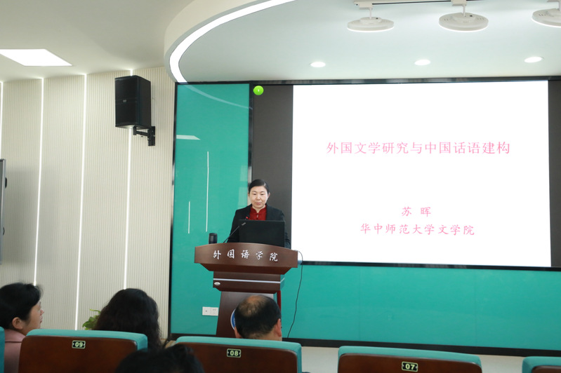 苏晖教授以文学伦理学批评的发展为脉络,详细从外国文学研究如何凸显中国视角和中国立场、外国文学学者在中国话语建构方面取得的成果、外国文学研究在建构中国话语、争取国际学术话语权方面可开拓的空间三方面展开报告,深入探讨了外国文学研究的“中国化”问题。她梳理并分享了自己多年来从事外国文学研究的经验和心得,强调中国的外国文学学者应立足于中国文学文化发展的需要,致力于中国学术话语体系的建构,努力做到以我为主、为我所用。