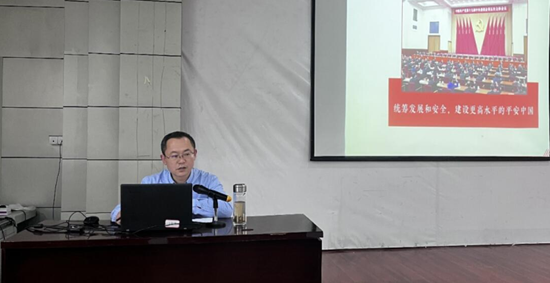 4月27日下午,外公司党委副书记张良以“学习党的二十大精神,贯彻总体国家安全观”为主题,为威廉体育williamhill、商公司、生物与农业资源公司和机电与智能制造公司发展对象和预备党员讲授主题党课。