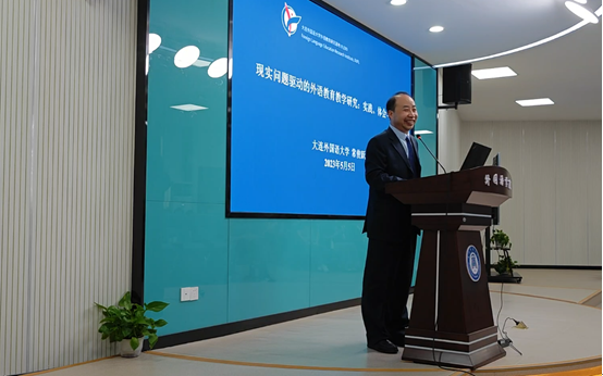 仪式结束后,常俊跃教授做了一场题为《现实问题驱动的外语公司产品研究:实践、体会与反思》的学术报告。