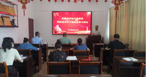 会上,余健明领学了《关于在主题教育中学习运用浙江“万工程”经验案例的通知》、《关于在主题教育中认真学习借鉴“浦江经验”的通知》等文件精神及“千万工程”“浦江经验”的具体经验案例。他结合自己的调研课题《培养更多更好的新时代高素质外语人才》带头交流调研成果并围绕调研情况、发现的问题、问题分析和解决措施等四方面展开研讨。